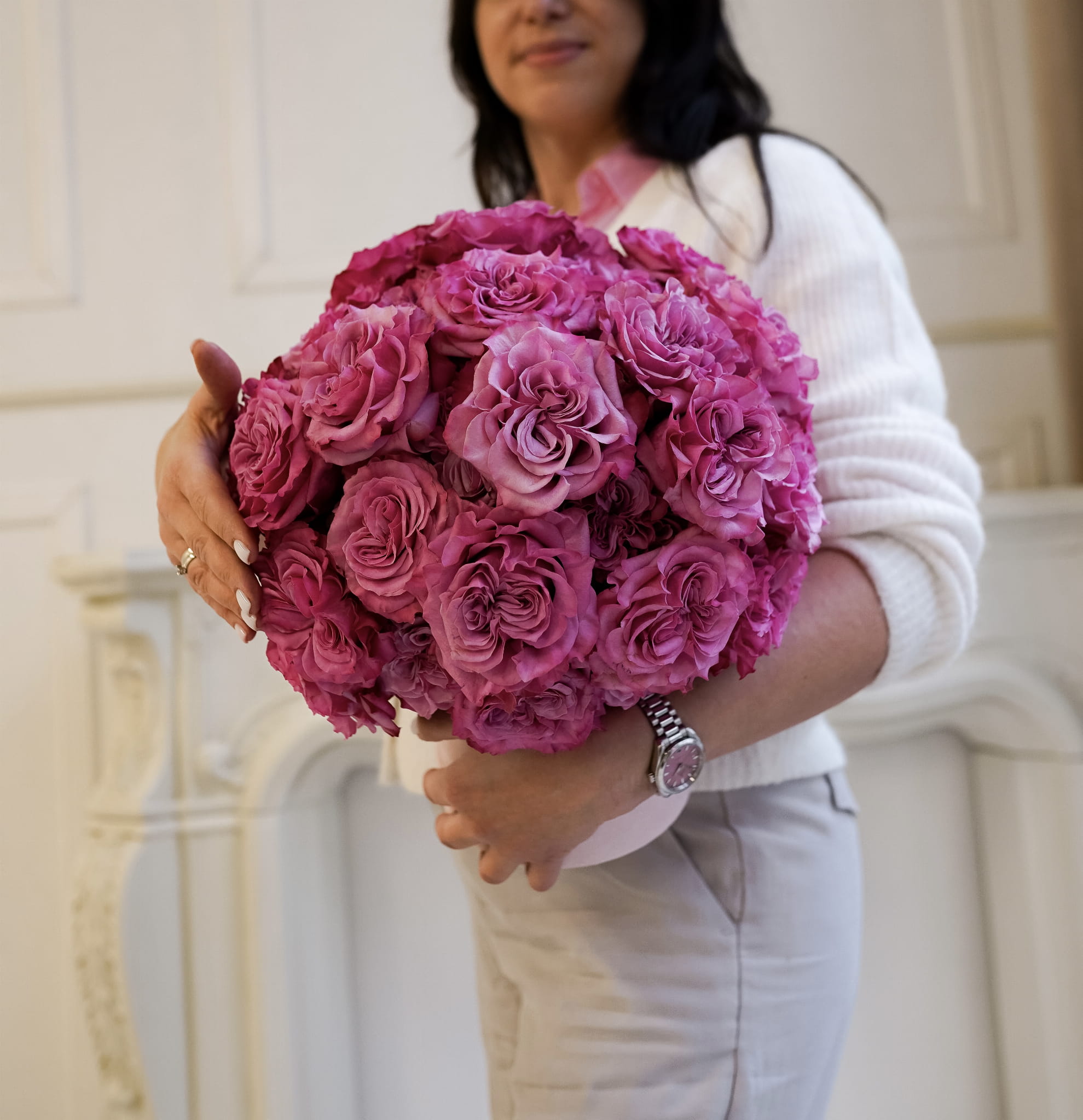 Róża Country Blues (ok. 50 szt) ułożona w welurowym pudełku, które później może posłużyć jako funkcjonalny dodatek do domu. Ta piękna ogrodowa róża zachwyci każdą obdarowaną osobę